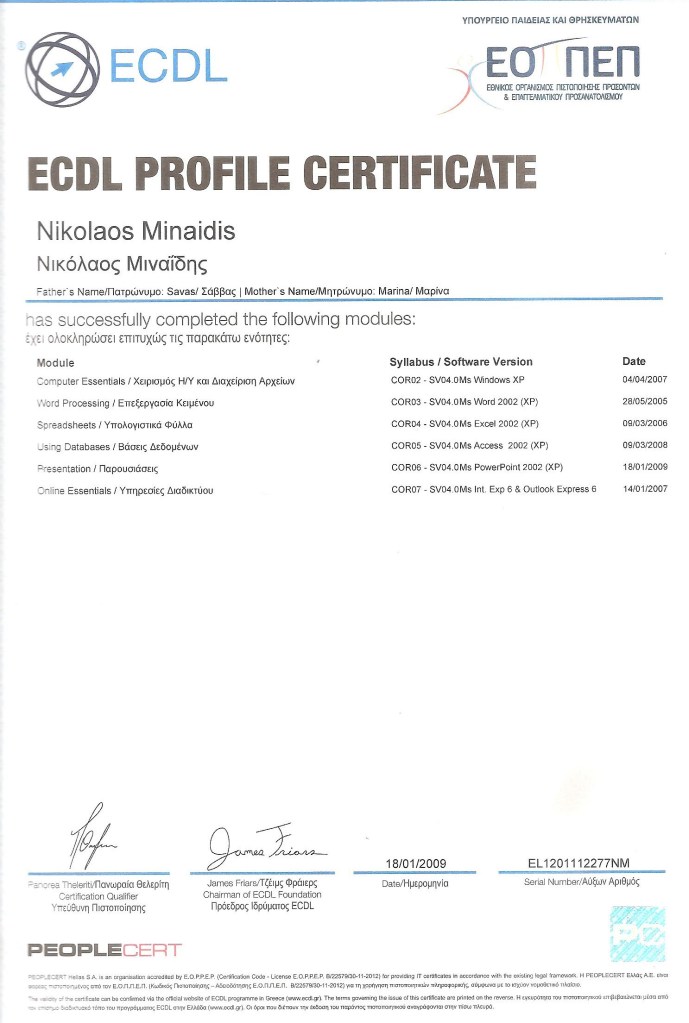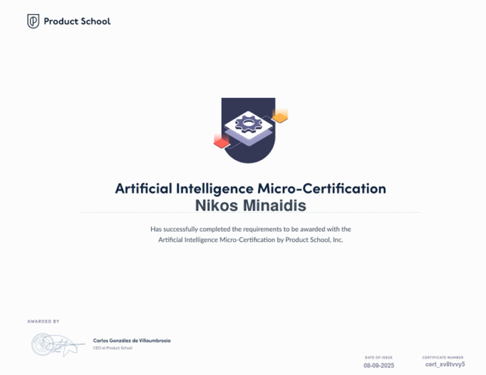 - Master’s in Informatics Department of Piraeus University in Advanced Informatics and Computing Systems in the field of Intelligent Technologies for HCI