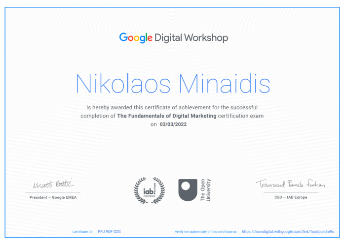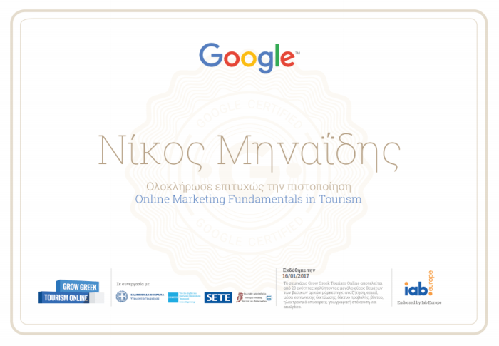 - Google Certificate in Online Marketing Fundamentals in Tourism