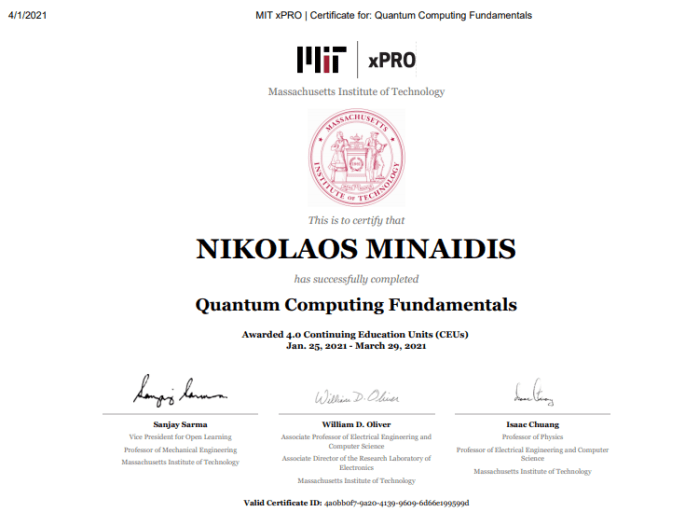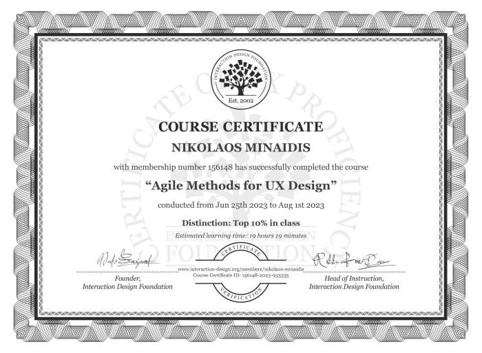 - Certificate in Product Design, Prototyping and Testing by USMx