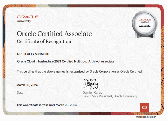 - Oracle Cloud Infrastructure 2023 Certified Multicloud Architect Associate
