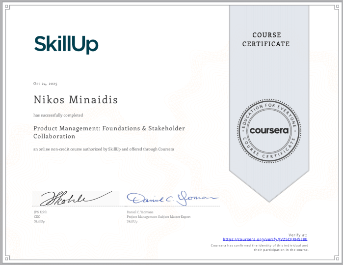 - Product Management: Foundations & Stakeholder Collaboration by SkillUp