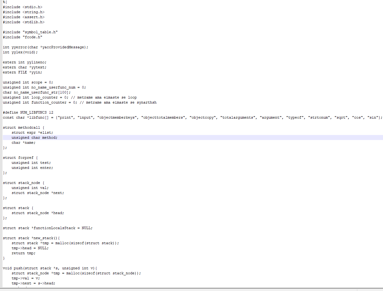 A Compiler implemented in C. The project consisted of 5 phases.