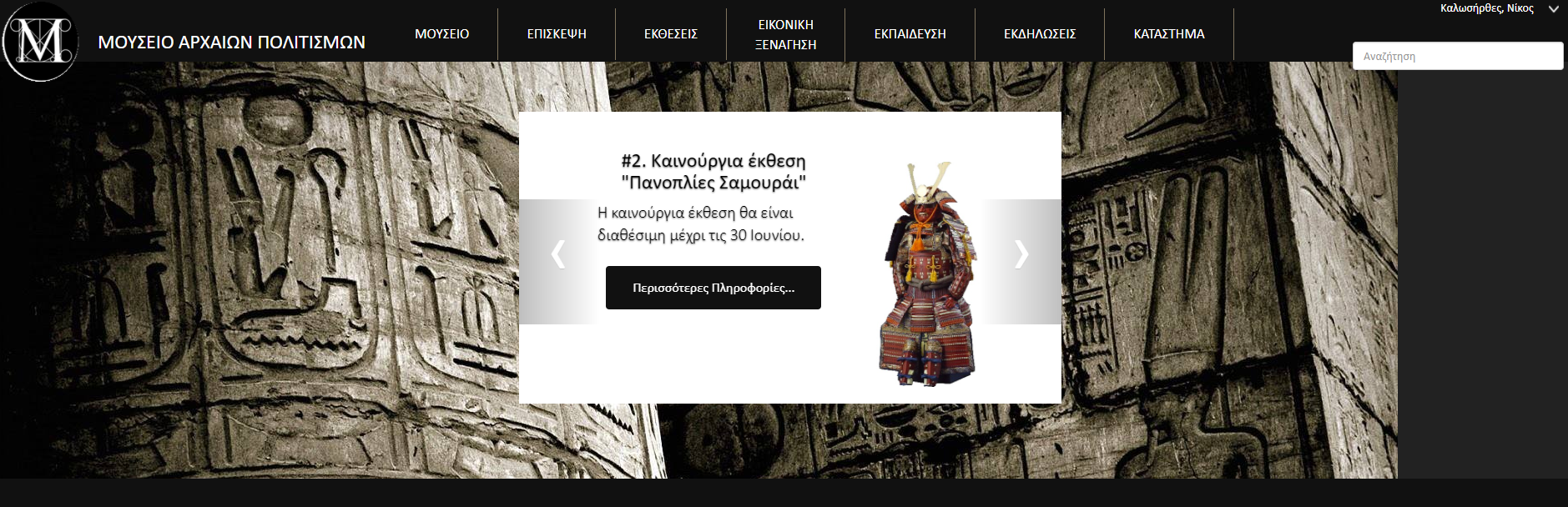 A Museum website in HTML, CSS and JavaScript for the demonstration of exhibits, announcements and Virtual Tours.