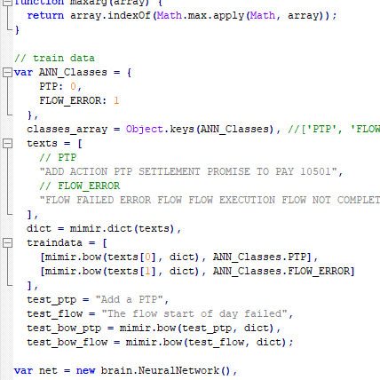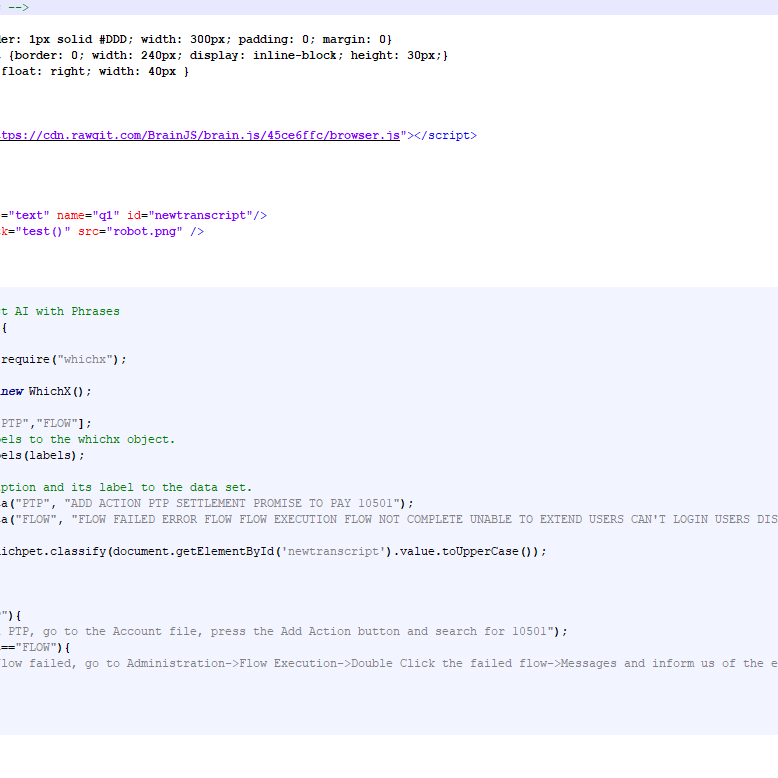 A similar project with the above, but in other version utilizing Brain.js , whichx.js and mimir textclassifier.js