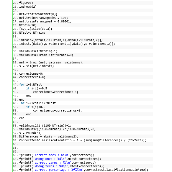 A MATLAB project which aims to analyze a given a usps_all.mat file that describe a 2200 total of pictures (in binary mode 0,1) and train the neural network to recognize them.